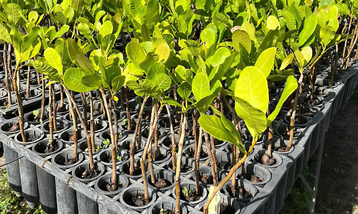Uma vez feito isso, o processo de multiplicação do caju é por clonagem. A partir do conjunto de plantas base, são feitas cópias. “Cada cultivar de caju é cópia de um conjunto de plantas que está lá na nossa estação experimental. Todas têm a mesma característica de produção”, observou o chefe-geral.
