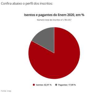 Entre os candidatos, 82,91% é isento do pagamento da inscrição (4.794.730) e 17,09% pagou a taxa de R$ 85 (988.627).